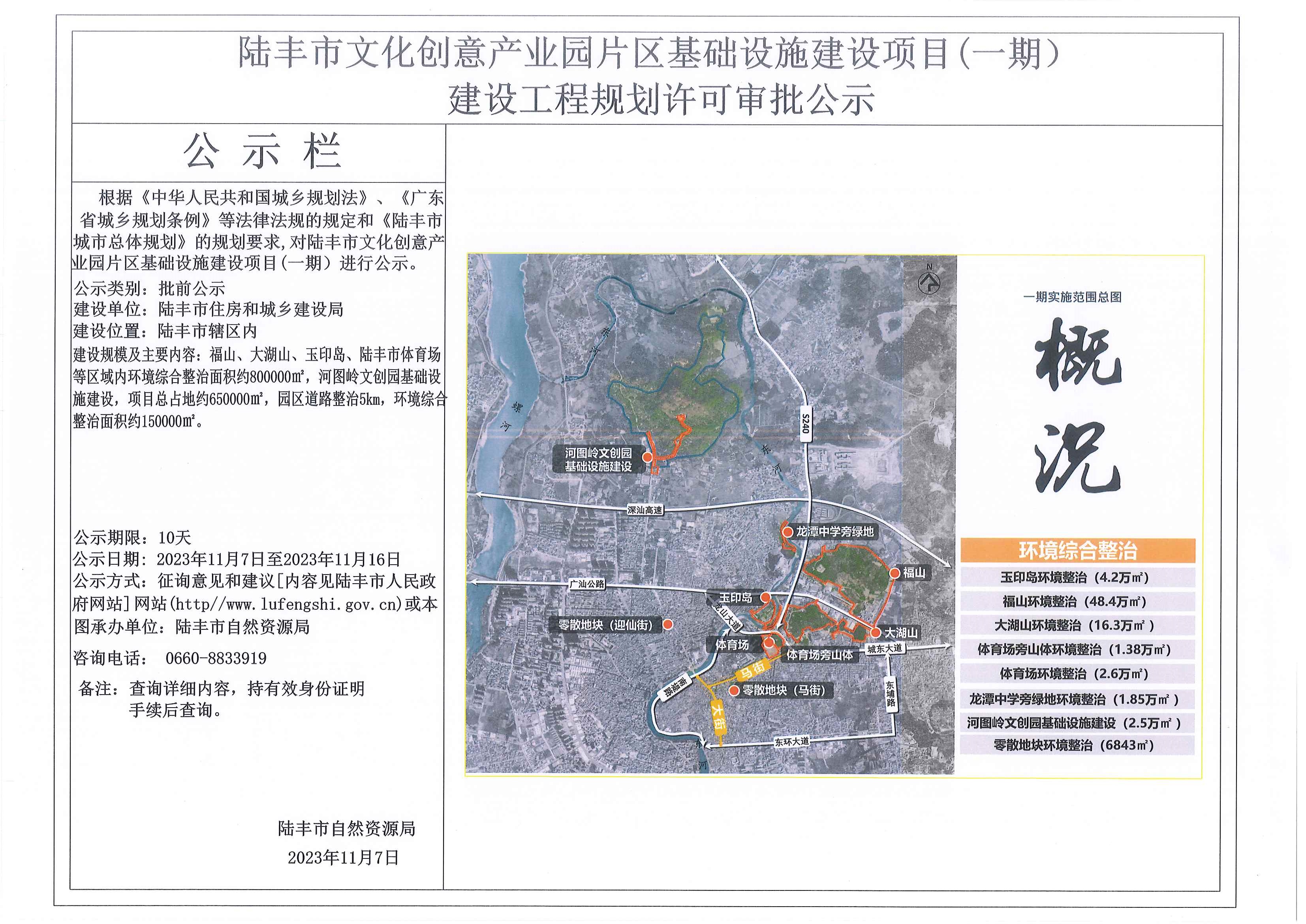 陆丰市文化创意产业园片区基础设施建设项目(一期)建设工程规划许可审批公示